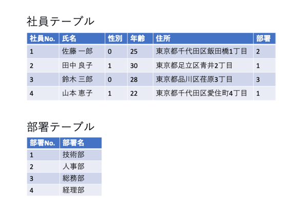 ある企業の社員が取得した資格をリレーショナルデータベース